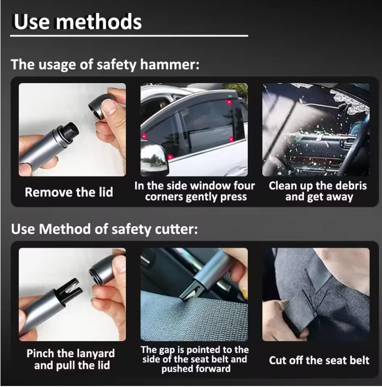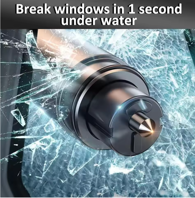 Marteau de Sécurité Voiture 2 en 1 – Brise-Vitre & Coupe-Ceinture d’Urgence
